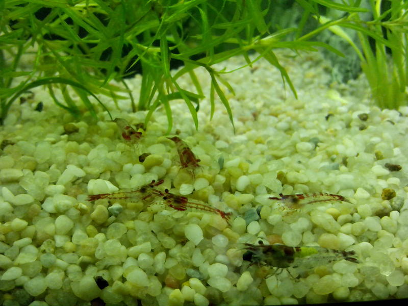 наблюдать креветку лучше конечно в малых объемах-в больших они очень хорошо прячутся) если все пойдет нормально-скоро у вас их будет много)