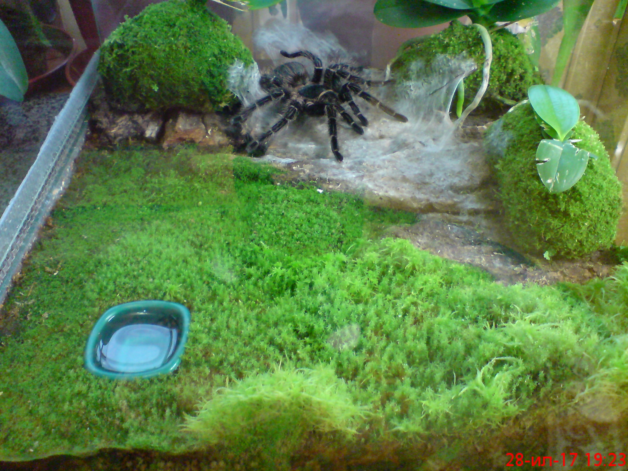 Террариум для паука Lasiodora parahybana с живым мхом и орхидеями
