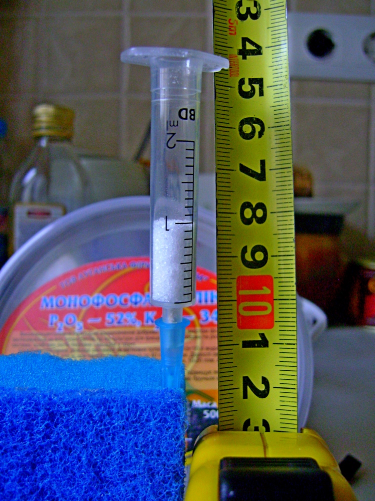 Для сульфата калия 6,67 грамм порошка. Вот так они выглядят в шприце
