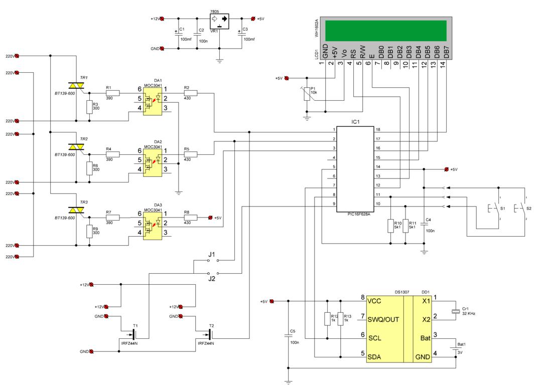 Аквариумный контроллер на pic16f628a (3 канала + PWM)