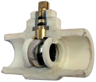 salys, То что они дешевле это хорошо и нарезанная резьба тоже отлично, пока все это безопасно т.к есть пластмасса, но! вот в кранах у вас скорей всего железная чаша (см. картинку) а это не приемлемо для морского аквариума, надеюсь вы понимаете почему. Если окажется что в ваших кранах есть железо, то надо их менять обязательно!
