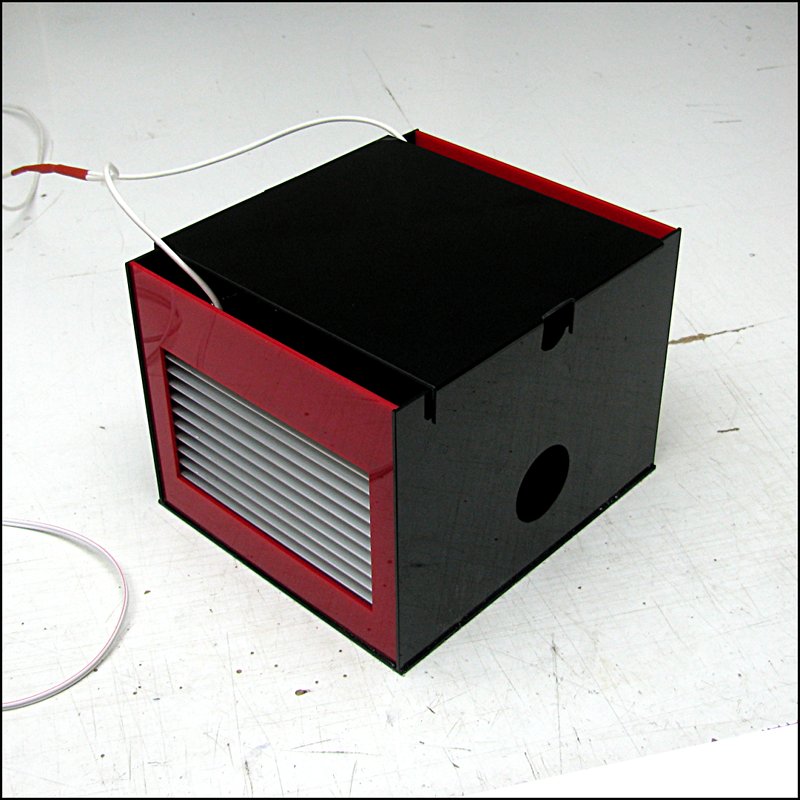 Емкость для баллинг метода, красный акрил, передняя сторона прозрачный акрил.