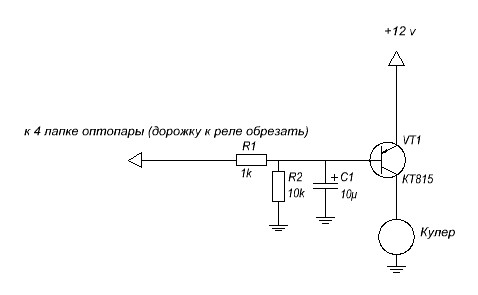 По просьбе BlackAlex публикую схему подключения кулера к ШИМ Юсуповского контроллера.