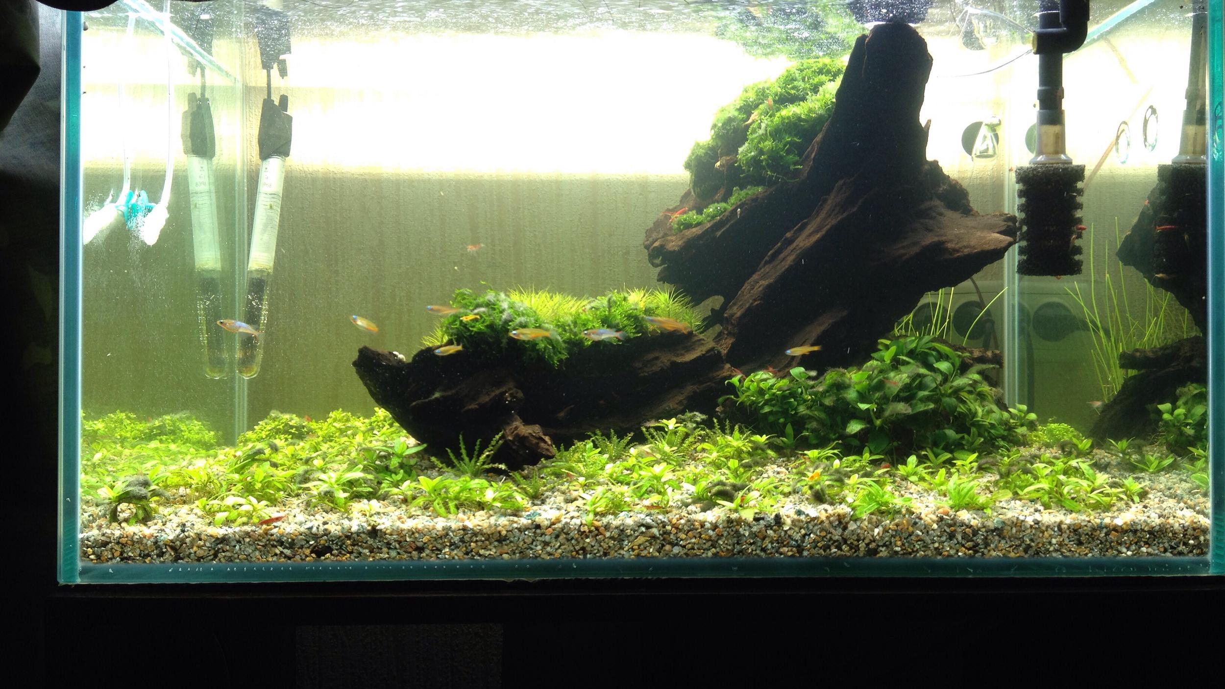 Новостей накопилось нормально с момента последней публикации фотки происходящего .Хотелось бы немного подбить все "косяки" в кучу ,может и кому пригодится в дальнейшем мои муки творчества ,но все же очень приятного .Что хотелось бы сказать про светильники начинающим или самоуверенным аквариумистам ,свет действительно очень мощный ,соответственно и уход за аквариумом будет тоже очень мощным ,если вы готовы постоянно уделять внимание своему саду то будьте готовы к экстриму ,и желательно запастись терпением это очень важно .Если хотите плавный ход событий нужен димер обязательно или светить не более 10ч а то и 8 вполне выше крыши (таймер обязательно).