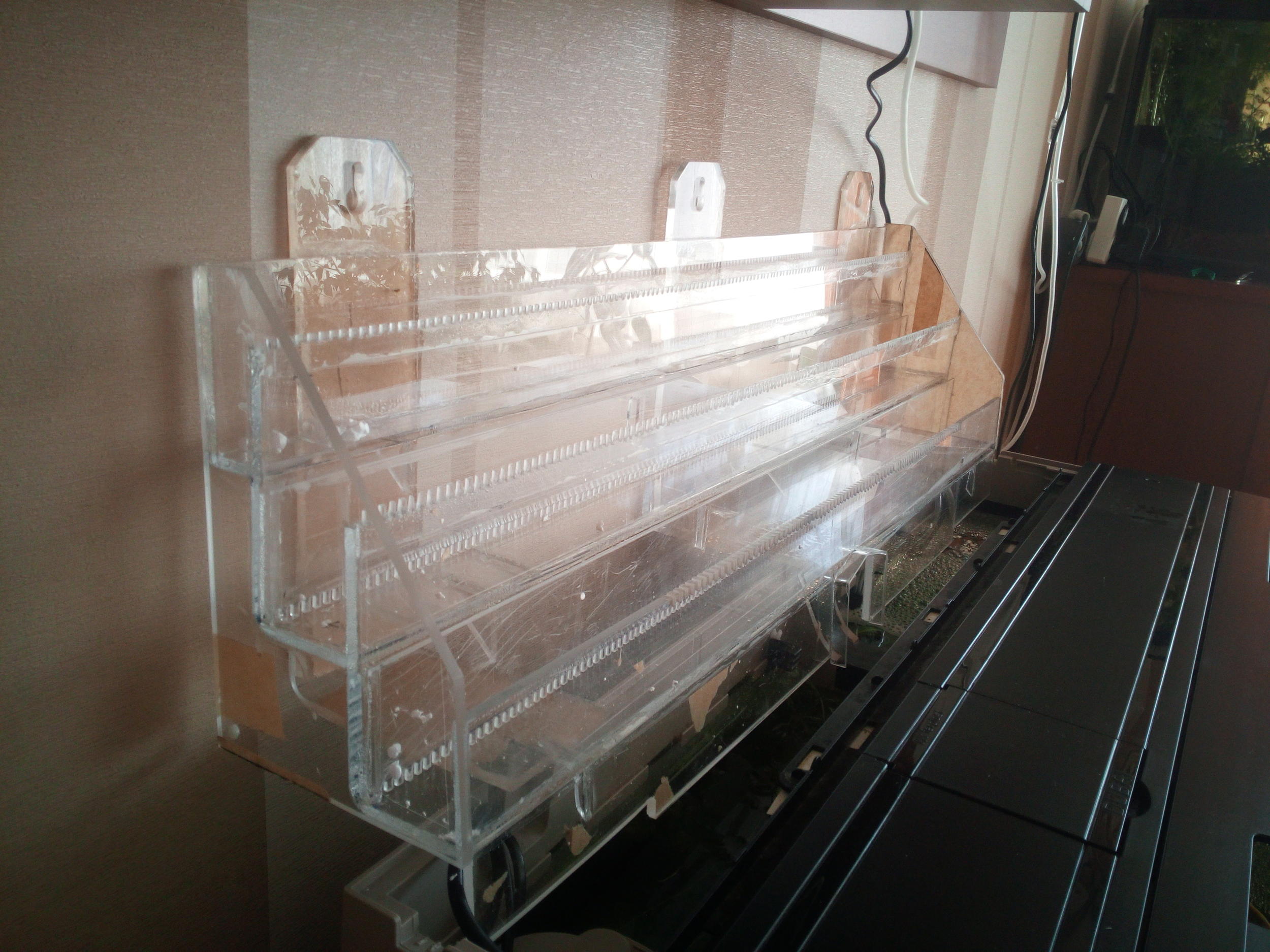 Вода в него будет подаваться через флейту в верхний (узкий) лоток, который будет техническим. При необходимости в него будет помещаться уголь, целолит и т д, сразу планирую или леку или синтепон.
