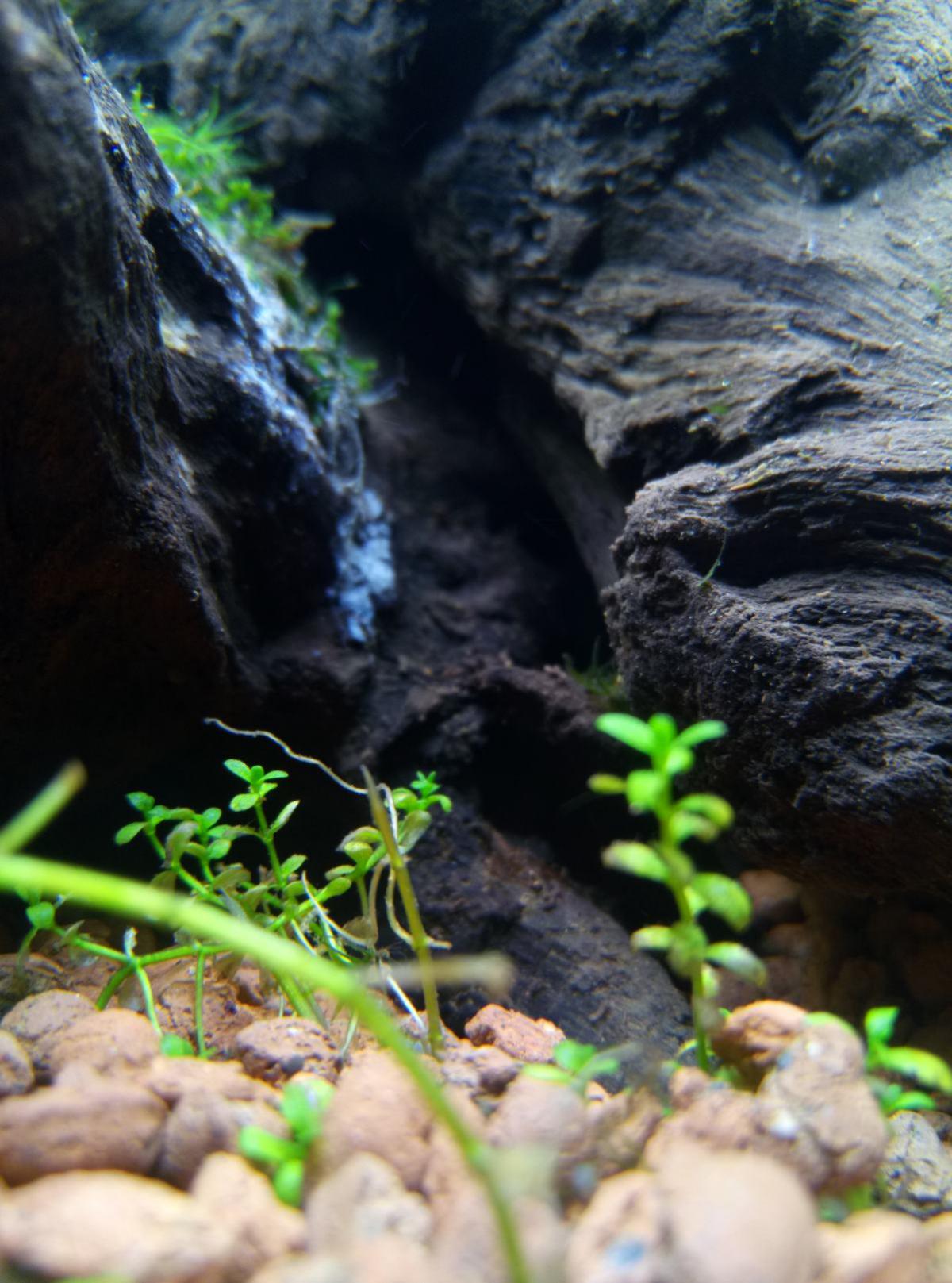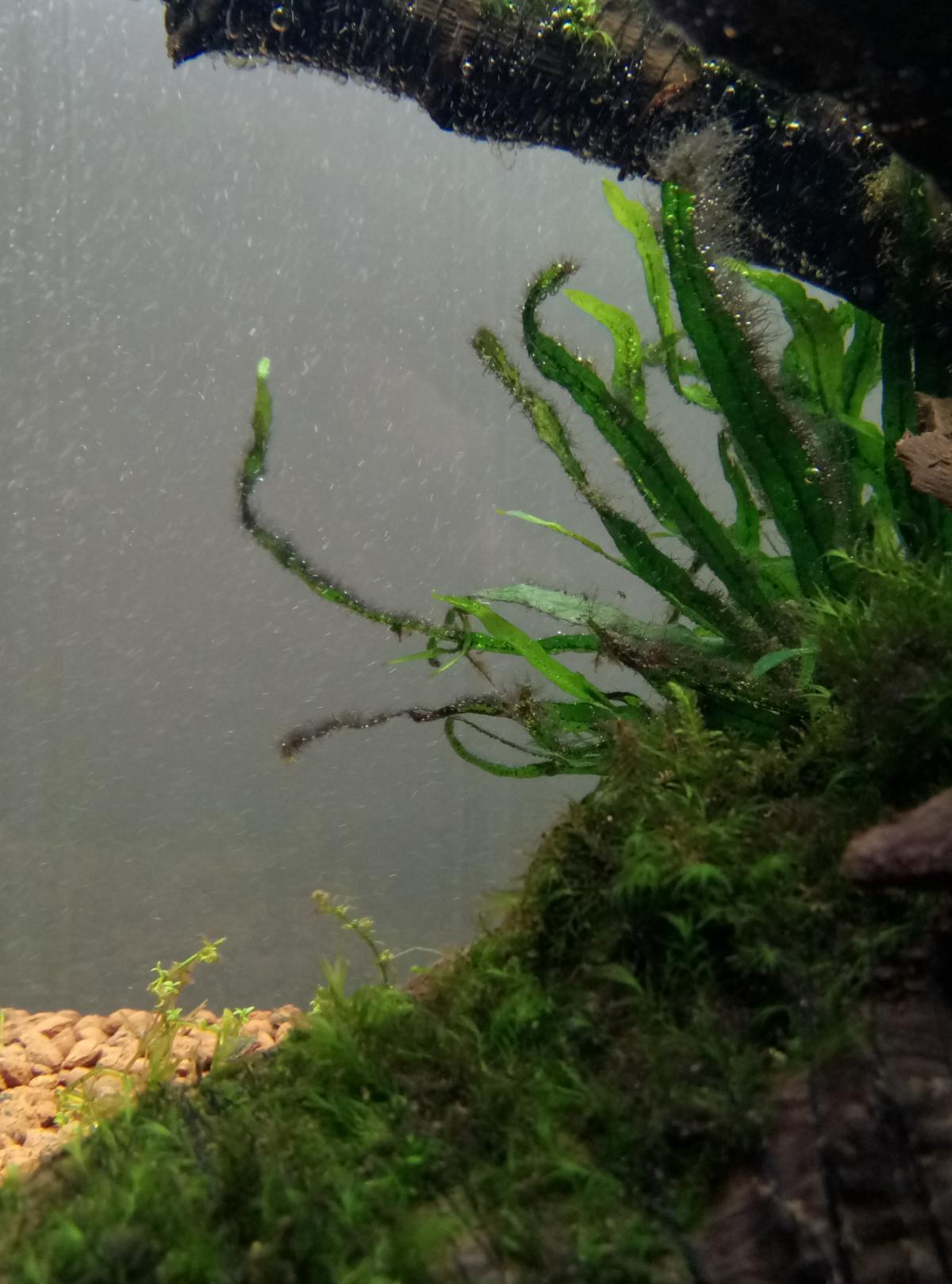 та, которая водоросли. на передних папоротниках постепенно тает. на тех что возле задней стенки уплотняется, растет, готовится к атаке.*