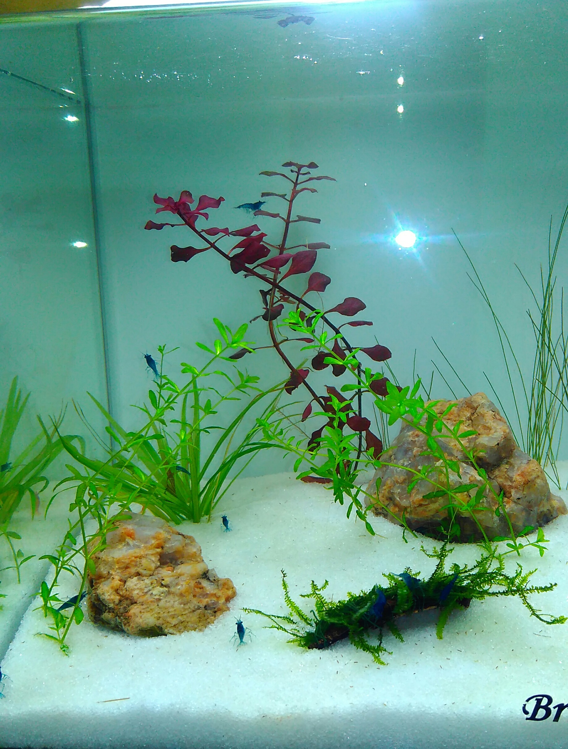 Креветочник эксперементальный ) , пробую грунт al2o3 , электрокорунд фракция f30 , под ним слой базальта как в общем аквариуме, стоит неделю , растения пузыряют .