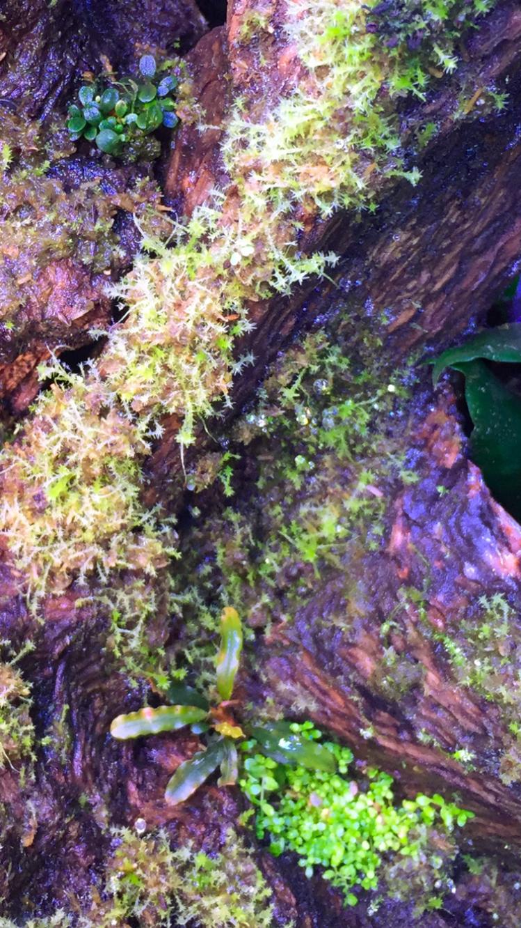 Мощный подход. Но мне пока не нравится это болотце. Если у вас там нет фильтра, то это может стать проблемой. Вода будет застаиваться, органические остатки будут перегнивать, будет не водоем, а отравленное болото. У вас по сути и так система дождевания + туман. Влажности полно. Вдруг если лягушкам будет недостаточно воды, они будут залазить либо в бромелии, либо можно поставить декоративные поилки по самому терику. Так проще менять воду. да и сама вода будет постепенно обновляться за счет дождя. Слишком сильная влажность может привезти к образованию сильной плесени по всему терику. И растения начнут просто загнивать. В тропических растениях, желательно чтобы вода была в розетках, но частично испарялась. Иначе сама розетка сгнивает. Хорошо что сделали вентиляцию. Я понял одно - без постоянного хорошего доступа воздуха в террариум, растениям не очень комфортно, особенно когда они разрастаются. Собственно со свежим воздухом, они получают СО2.