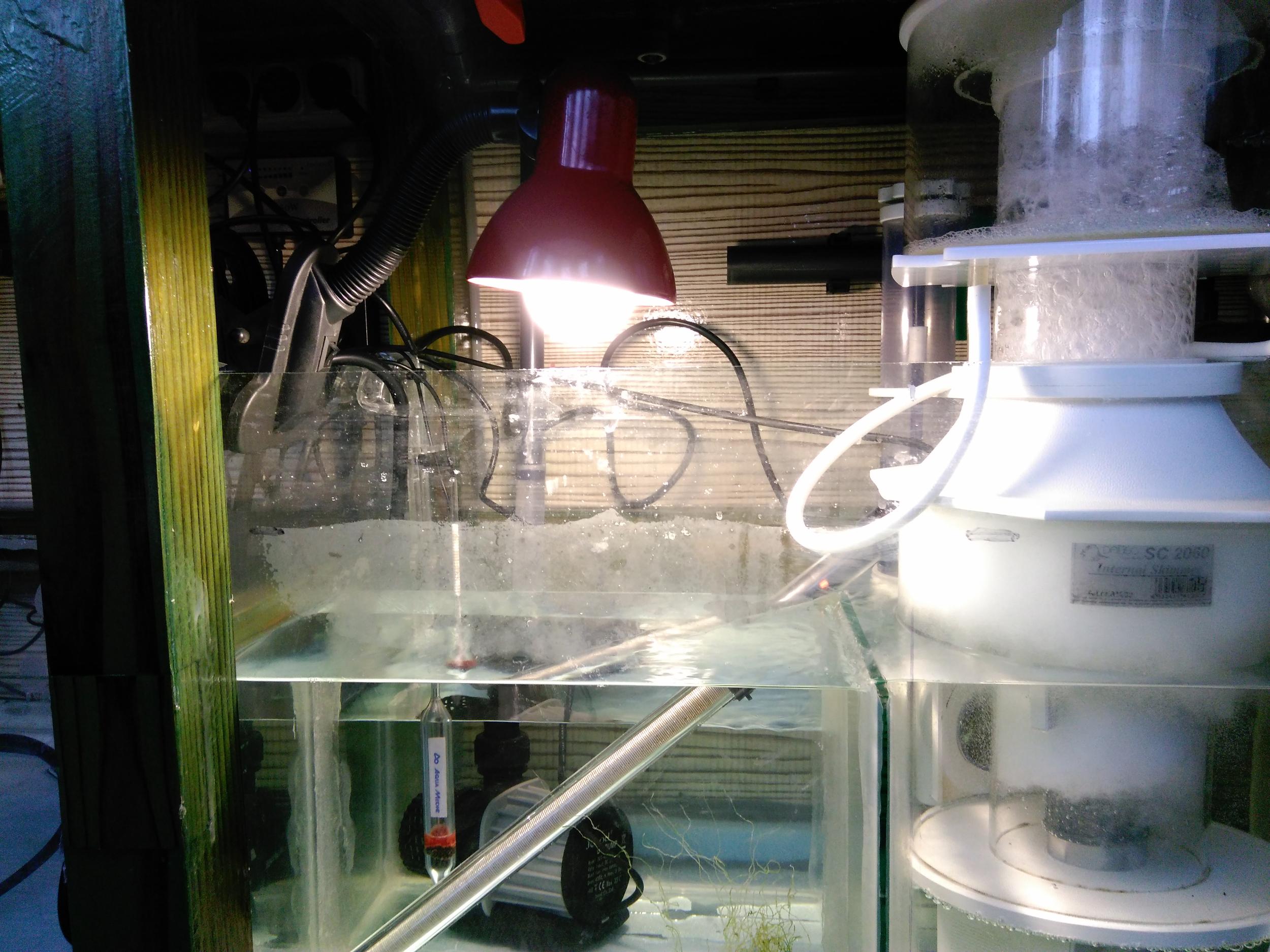 Зміни на сьогодні. Запустив Пінник і водорослевик . Правда незнаю чи вистачить того світла яким освічує водорослевик(стоїть проста лед лампочка патрон Е27,12вт,2800К,1000люмен).Акваріум поки несвічу, так як ще нікого там нема.