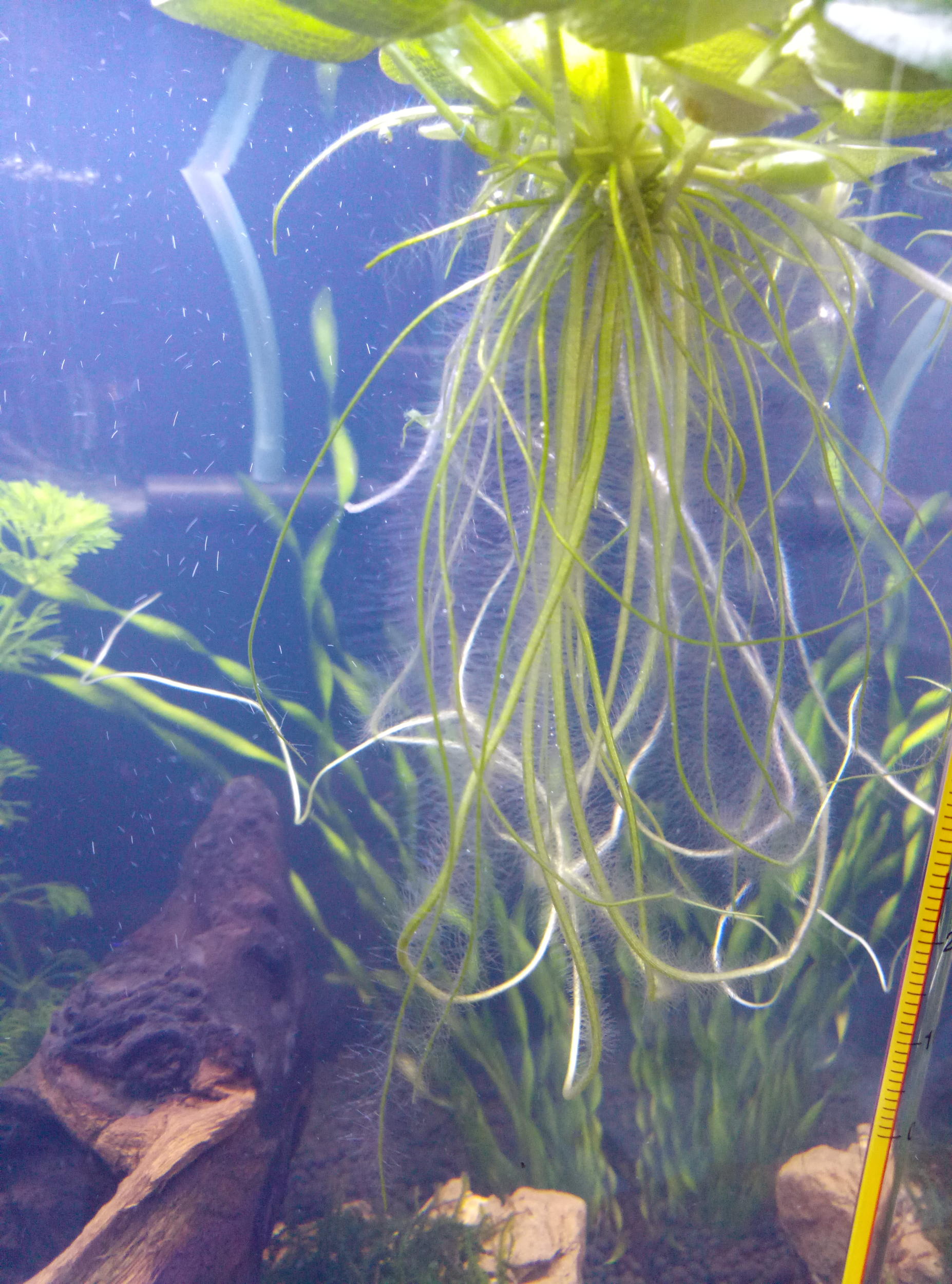 И сегодня на корнях этого плавающего монстра(простите, название не знаю) увидела какого-то червя в длину где-то 2 см, тоненький как ниточка, светло-коричнего цвета. Гугл мне толком ничего не ответил по запросу. Что оно такое и как от него избавиться?