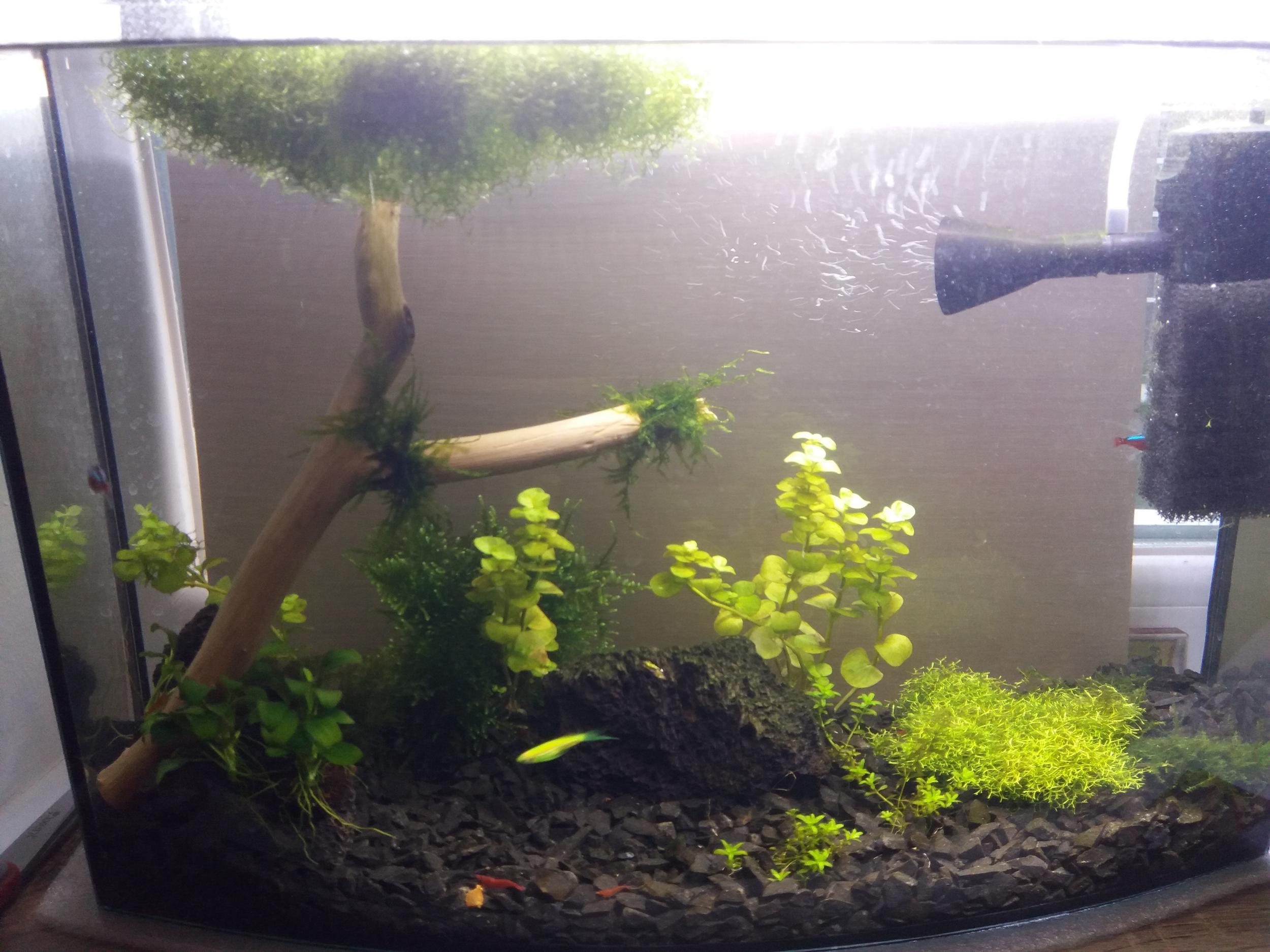 перезапустился ксожилению мелкого подходящего грунта не нашел. все растения промыл под потоком холодной воды в ванной по возможности старался смыть всех улиток, грунт промывал горячей водой с под крана так же и стенки и промывал холодной водой до потери запаха или видимых загрязнений. растения пообрезал подгнившие листья и поубирал ниткаобразные водоросли. Для старта использовал половину воды с под фильтра купленную, а также бактерии сейф старт, поменял 3Вт лед температурой 4500к (приблизительно) на 4Вт 6500К+