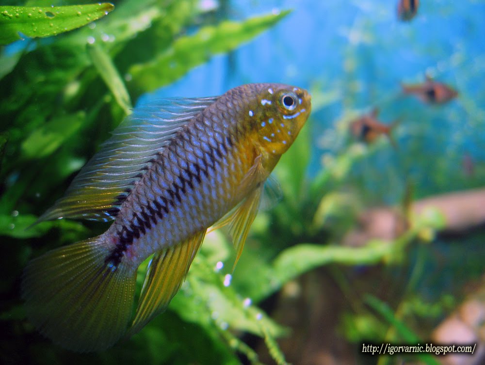 Ну в заключение - "Муж в общаке", вернее апистограмма Борелли в общем аквариуме. Думаю, что теперь можно иметь полное представление об этой чудной рыбке.