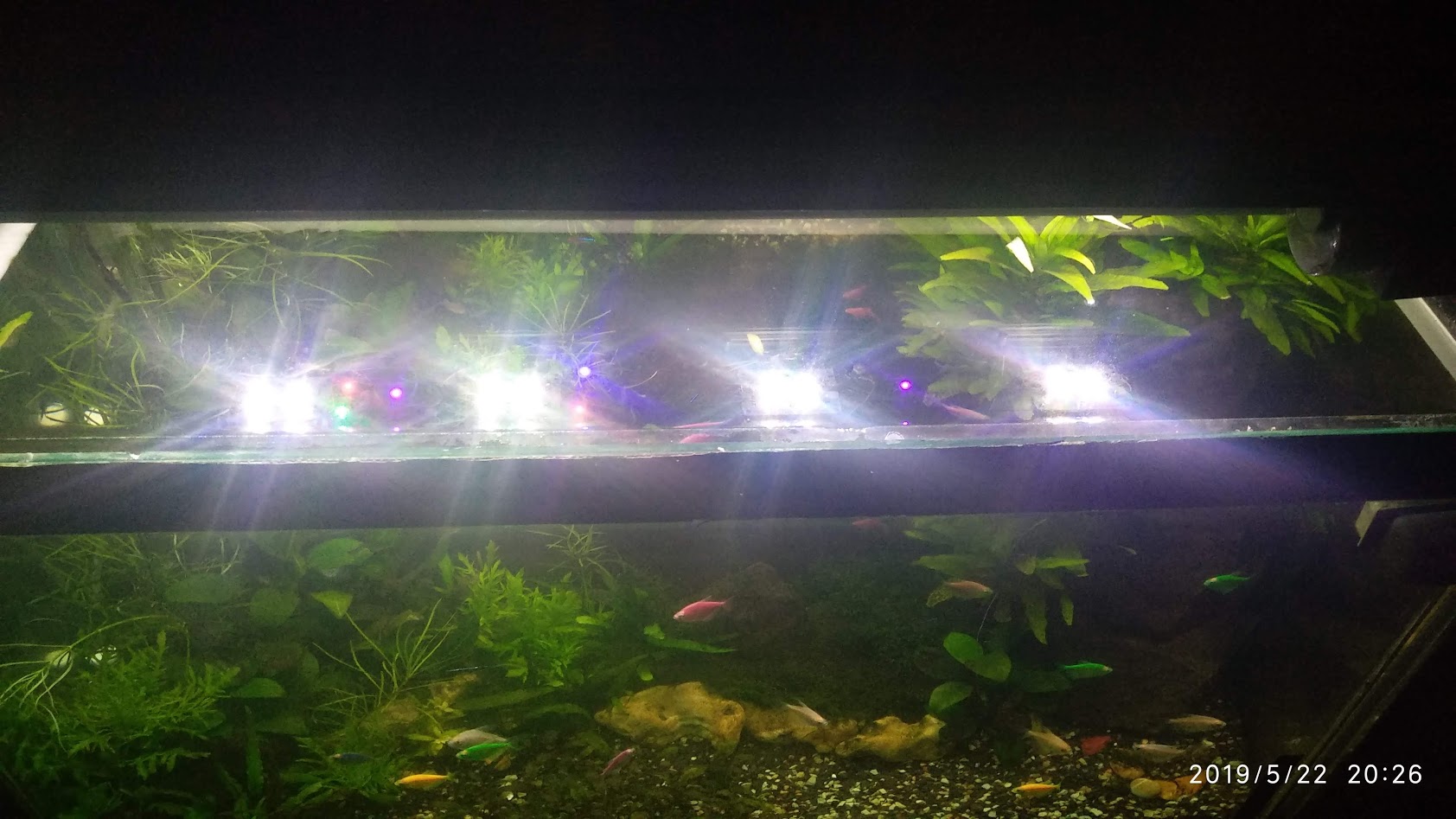 первое фото как раз дата установки. Пока особо нет статистики т.к одновременно снова начал давать СО2 но пузыряет даже мох  и в то-же время на ленте хоть было и таки светопотока больше но на ленте сильно зеленело стекло, тут за счет меньшего засвета стекол стекло не так зеленеет.