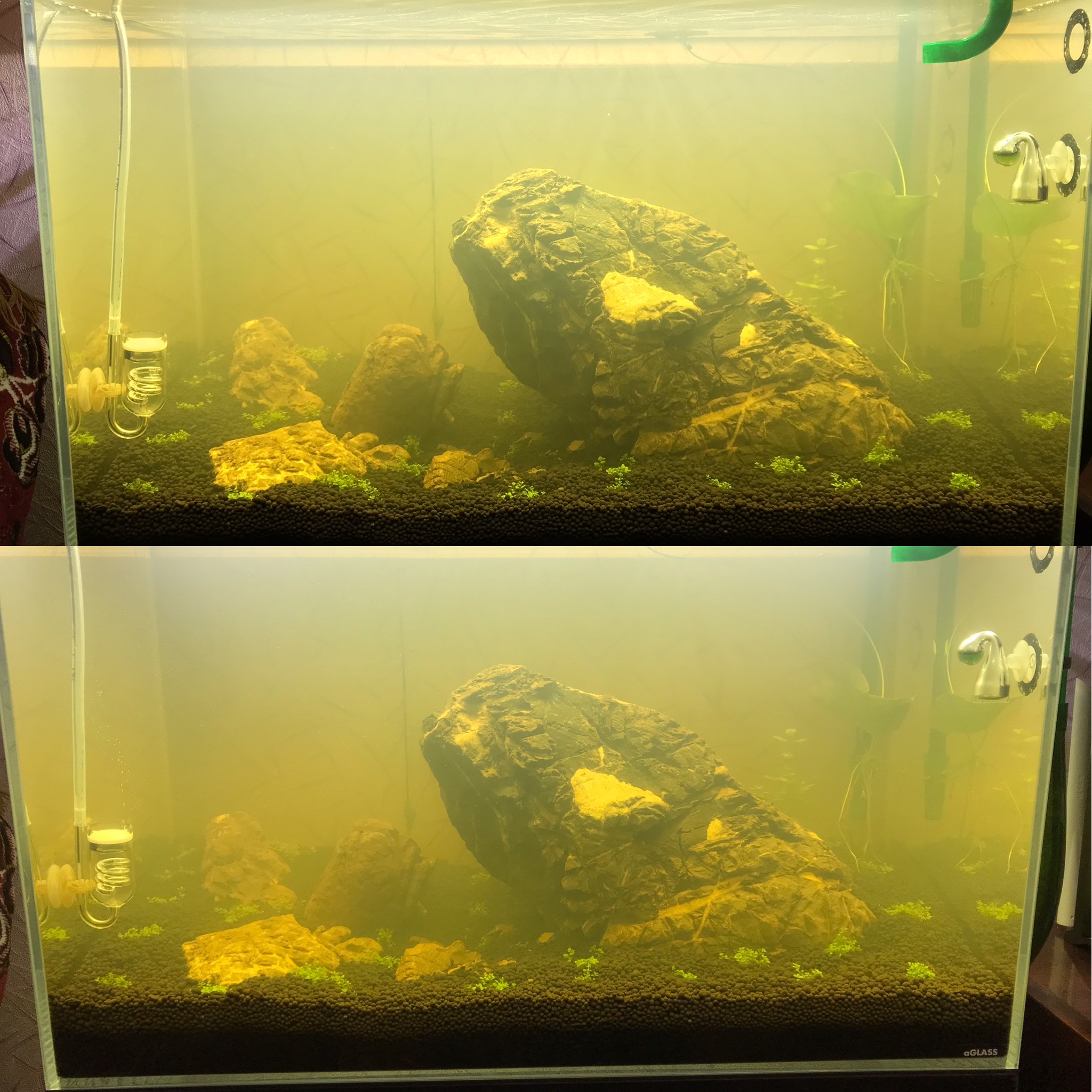 А вот с новым запуском какая-то белеса в акве. Хотя я сделал только две подмены до этого момента, после которых ситуация улучшается. Возможно, через неделю/вторую уйдет...