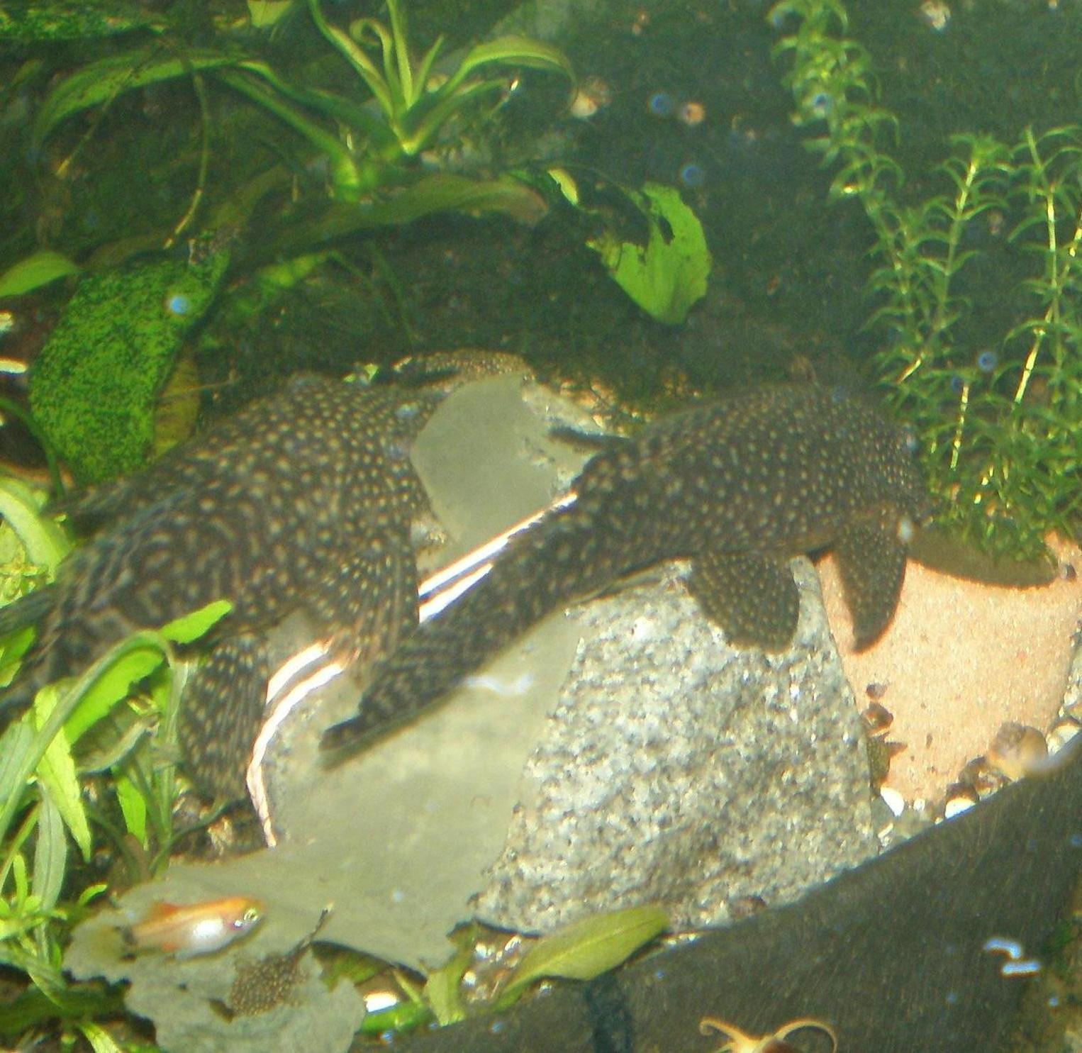 Тут в одной из тем высказывалось мнение про то, что условия содержания влияют на внешний вид рыбы, и абсолютно идентичные види будут по разному выглядеть. Так вот имею трех представителей анциструсов с "обычным" окрасом, купленых в одном магазине и выросших в одной емкости (2 самки и 1 самец). Фото конечно не важные, но раглядеть можно, что самец и одно самка похожи, а вот вторая самка явно отличается по окрасу. Не знаю, что это, природная морфа, расса, или чего то еще, но то, что под названием "анциструс обыкновенный" продают шо попало - это факт.