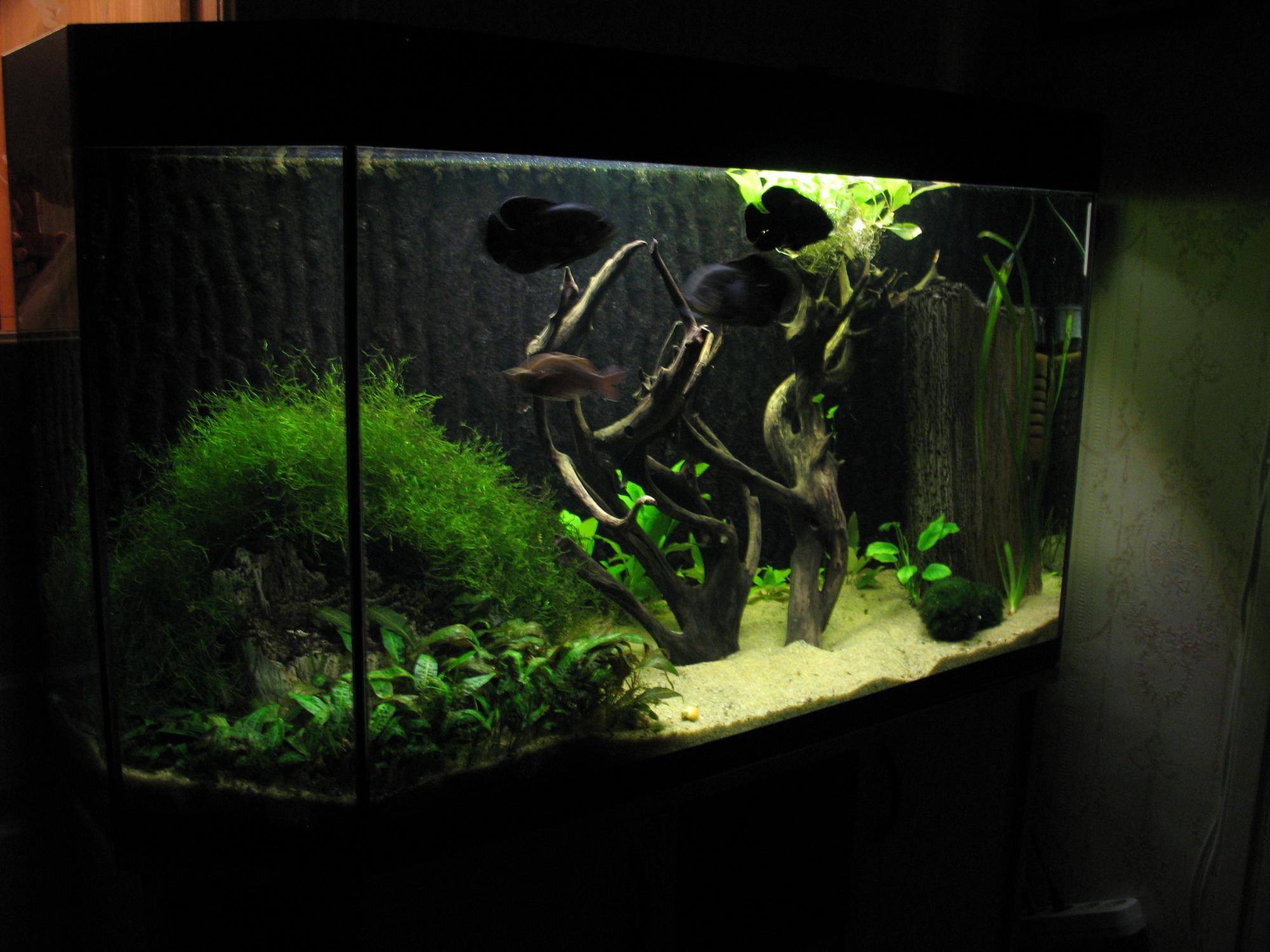 Акваріум все більше починає вимагати миролюбивих спокійних риб...на мою думку, дуже гармонійно у високому аквасі з такою корягою виглядали би скалярії.Особисте враження...
