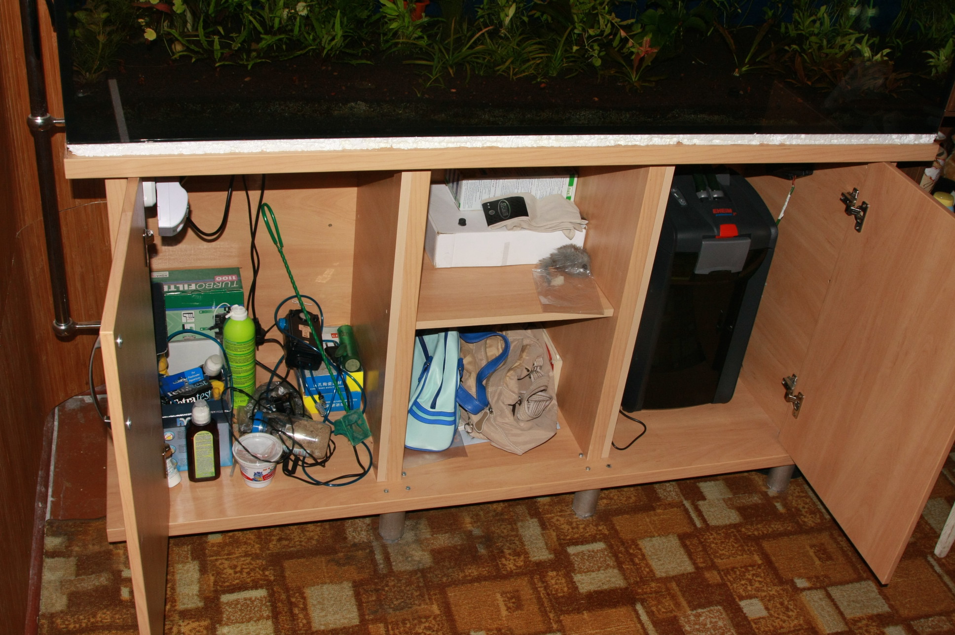 На фото - общий вид аквариума, тумба и свет с держателем.
