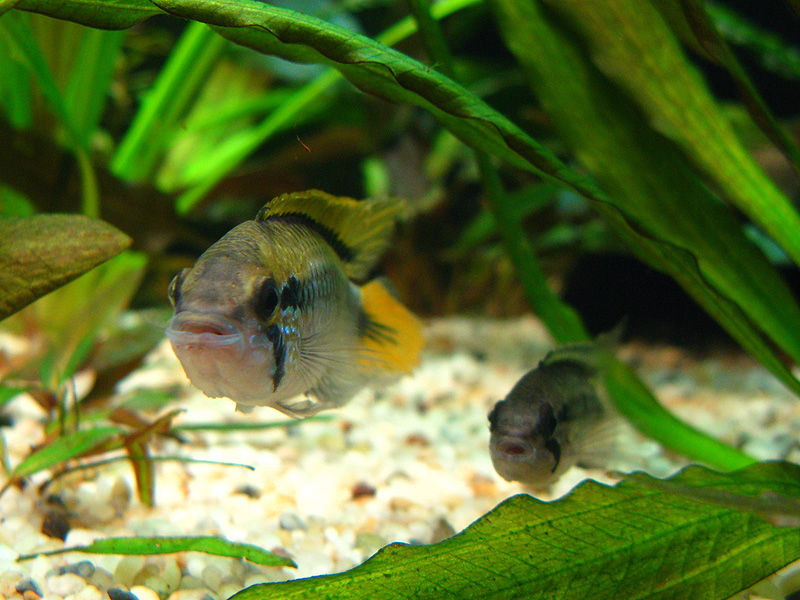 . В самом начале можно посмотреть на этих апистограмм - видно, как самец красуется перед ... ну не самцом же???