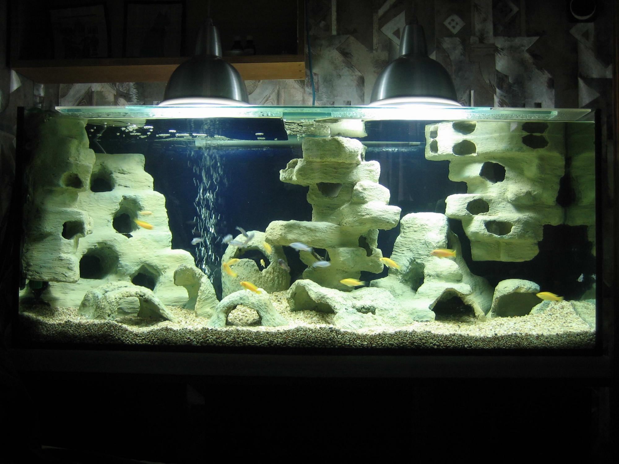 Аквариум от акватики (качество супер) 240л. Жду пока отстоится перед покупкой рыб, подскажите сколько и каких малавийцев можно покупать чтобы все слои были заняты и был мир.