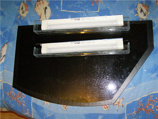 А теперь по порядку: заказала самодельный аквариум на 90 литров (без крышки) с обычным покровным стеклом, которое заклеено чёрной плёнкой. Уважаемый продавец сделала на покровном стекле из стекла коробочку, куда поместил лампу ULTRALIGHT T5 8W и сказал, что для моего аквариума этого света даже очень много. После того как в аквариум была налита вода и включен свет..... то в этом полумраке вообще ничего видно не было  . Теперь надежда только на ВАС, длина крышки в самом длинном месте всего 59 см (дальше идёт скос на крышке, т.к. это место для кормления), какие лампы и как я могу туда втулить???