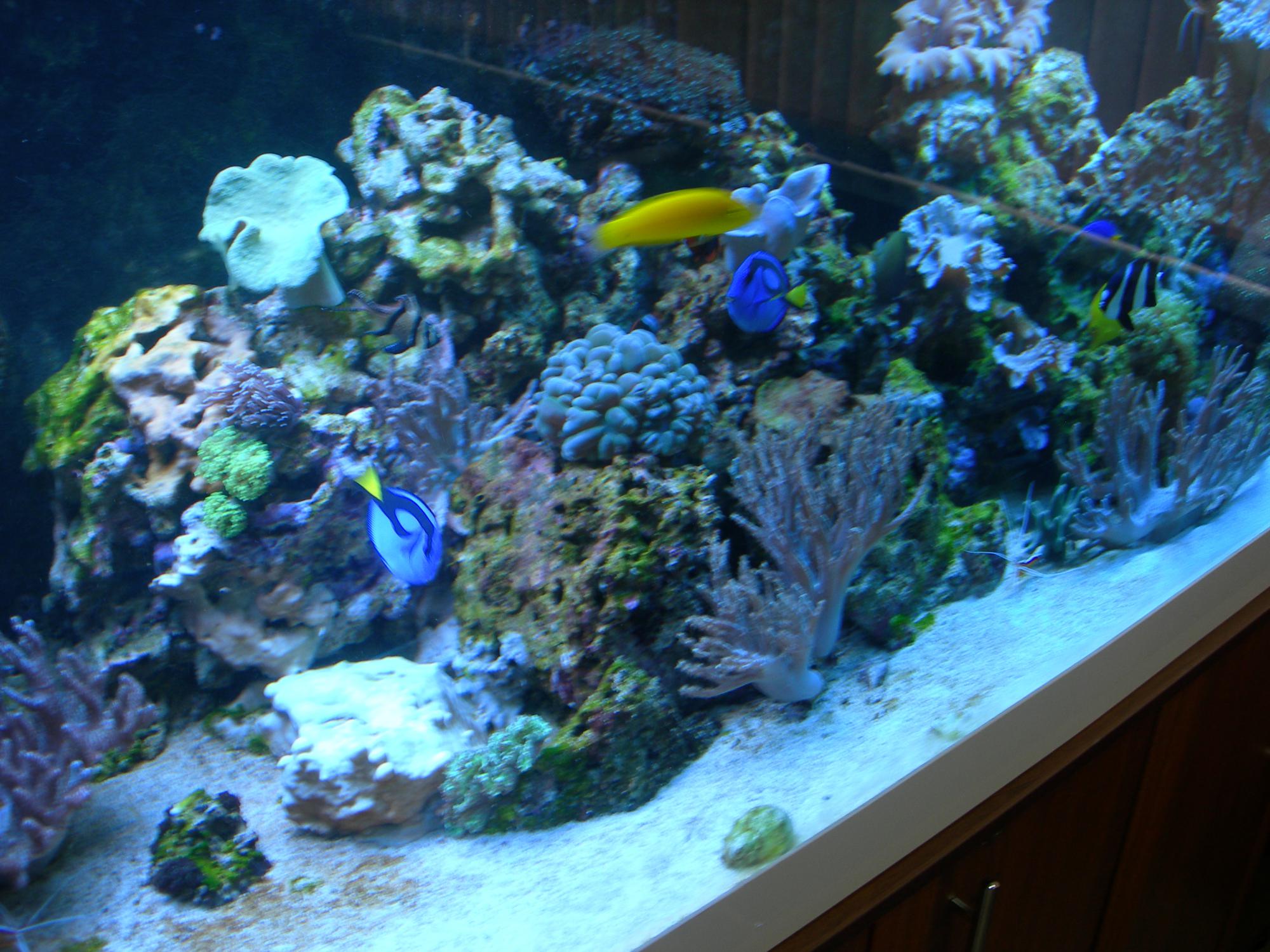 Акве два года. Произошла общая замена света. Вместо 16х39Вт теперь светит 6х80Вт. Светильник от Логинова- без вопросов  , комплектация ламп от iReef. Поставил то что посоветовали и все остались очень даже довольны  . Лампы "ATI"- 2шт Blue Plus, 1шт Actinic, 1шт Purple Plus, 2шт Aquablue Special.