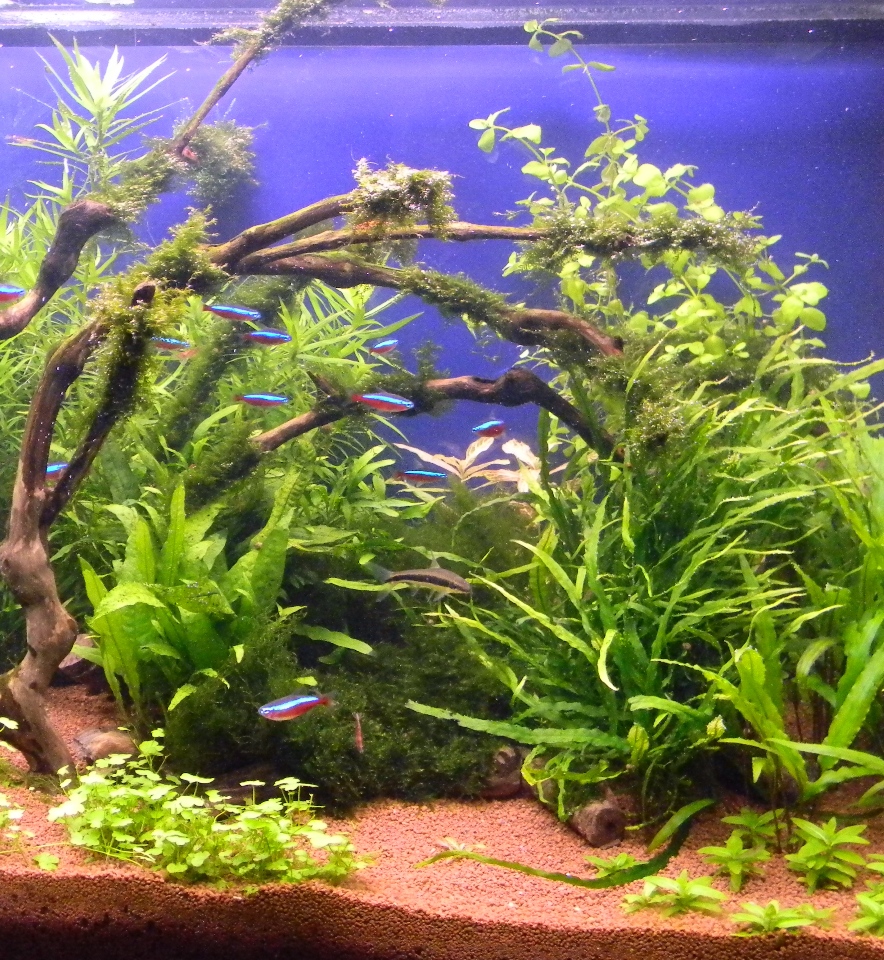 Извлек из аквариума большую часть мха фиссиденс фонтанус, а также анубиасы, папоротники тайландский, винделофф и больбитис. Оставил из папоротников только тайландский узколистный. Отчеренковал камомбу аустралис и проредил гидрокотилу трипартиту. Приобрел несколько новых растений с корневой системой.