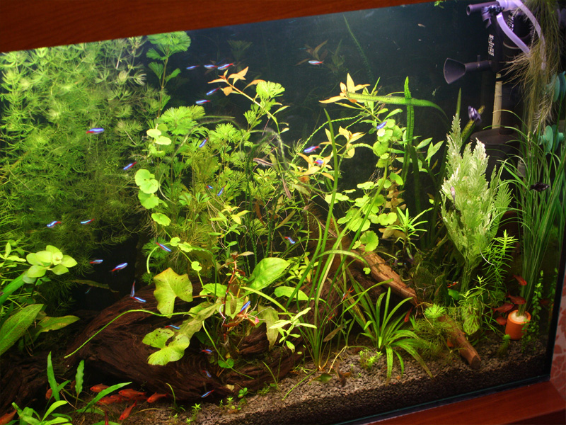 А мой запущен 22.01.11 плюс подаю СO2 1 пузырек в секунду.Сегодня первая подмена. На фото прекрасно видно в правом углу где только залит аквас амазонка какая и какая через 6 дней.