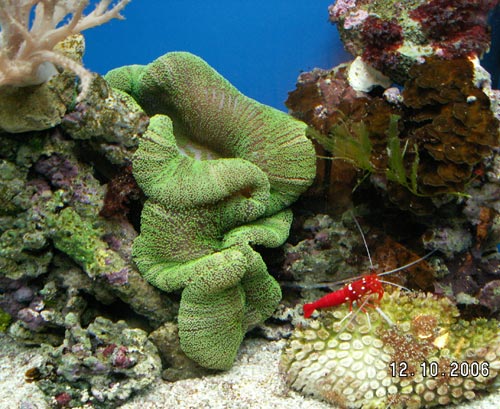 актинию-коврик и 2 креветки.