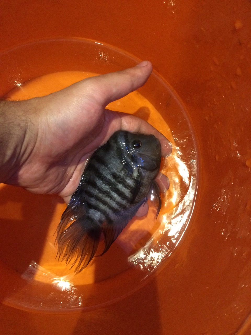500 грн. Крупный самец радужной цихлазомы, замерян рулеткой - 32 см в длину и 17 в высоту, весом около 1 кг. Рыба массивная и этим производит впечатление, предпочтительно аквариум от 300 литров со стеклом не тоньше 10 мм.