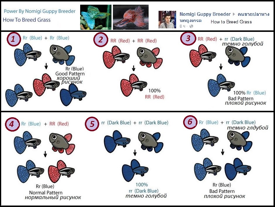 По разведению Grass (Трава) , думаю лучше обратится к опыту селекционера из Тайданда Nomigi(ник-Nomigi Guppy Breeder) . >>> См. на фото его схему .