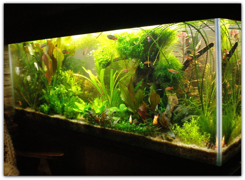 Сегодня подмена воды в аквариуме. Верхушка острова на коряге.