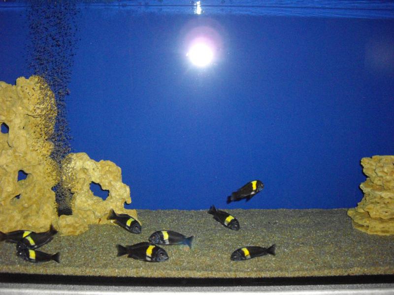 Спасибо Анатолій Каліщук за Julidochromis marlieri,Lamprologus multifasciatus и Сhalinochromis bifrenatus.Все доехали отлично!Через несколько минут после запуска устроили дружную потасовку,где чья територия и раковина.Минут через 10 после решения тереториальных притязаний приступили к поискам чего б захарчить!Размер рыбы приятно обрадовал!