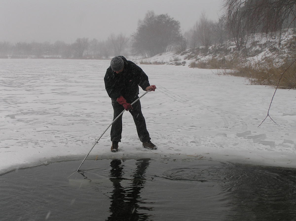 Ловил сегодня со льда циклопчика на Гребном канале нашей великой реки Харьков.