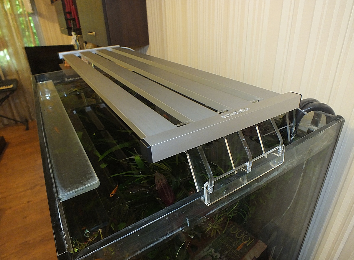 Светильник сразу установил на аквариум, смотрится изящно, и легко ни чего лишнего, света с избытком, то что я хотел.