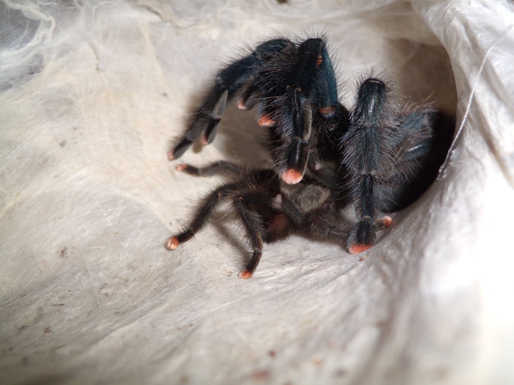 yura 19871201, Это пока ювенил,как станет адультом будет не мене агрессивна.Но она такая миниатюрная,что серьезно её угрозы не воспринимаются. У меня сидит самка с коконом ,верне с тряпочкой какой-то , думаю ничего у неё там не получится ,слишком молодая ещё.
