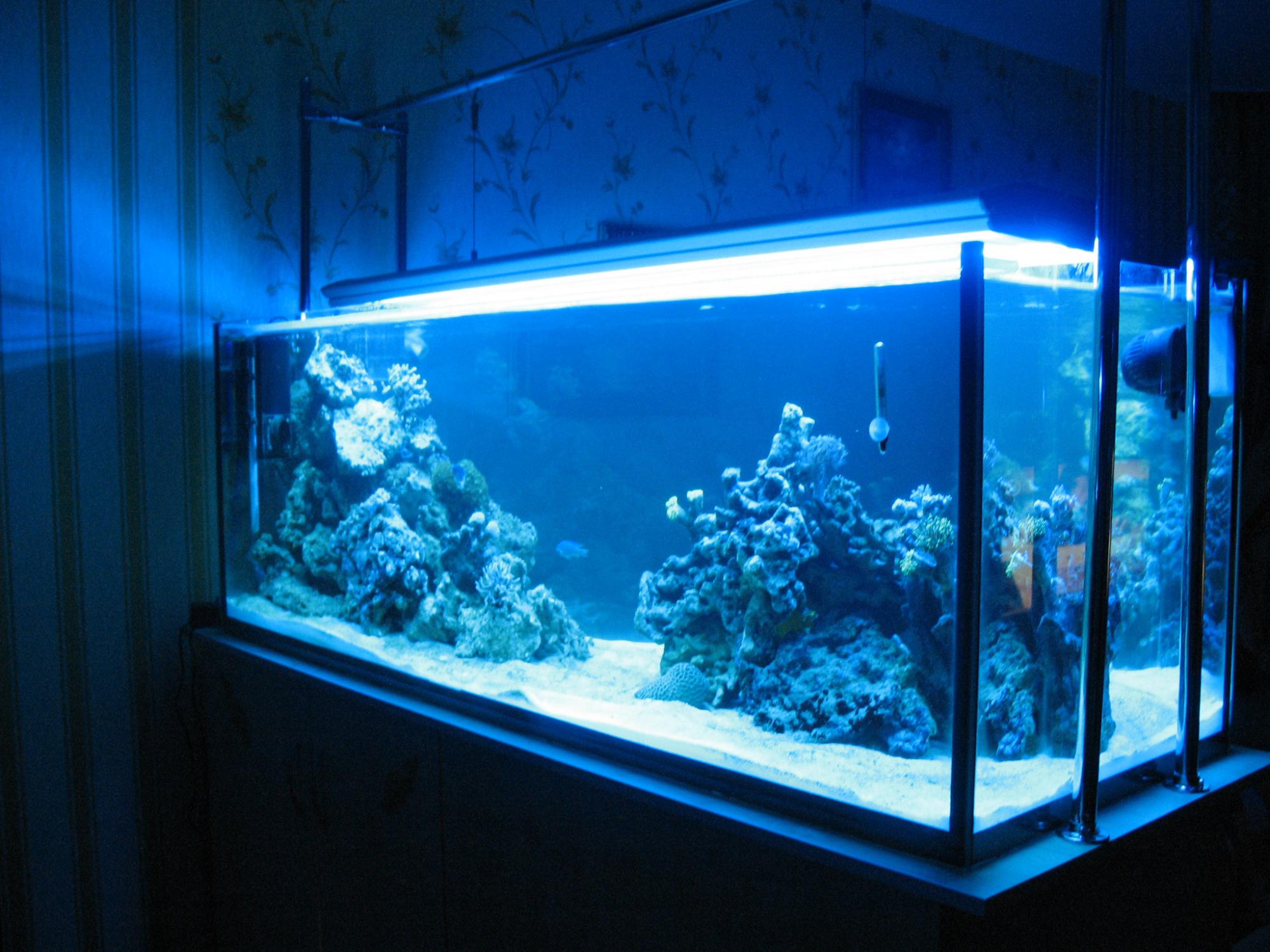 Переделан так : заменены балласты китайские на волсон шваб 4 шт. для ламп 80 ватт. Установил 4 актинические лампы Лампа Aqua Medic Reef Blue 80W, 145 см и 4 белые лампы Aqua Medic Reef White 80W, 15000 K, 145 см. Итого суммарная мощность 640 ватт.Освещение включается раздельно-каждая пара ламп.