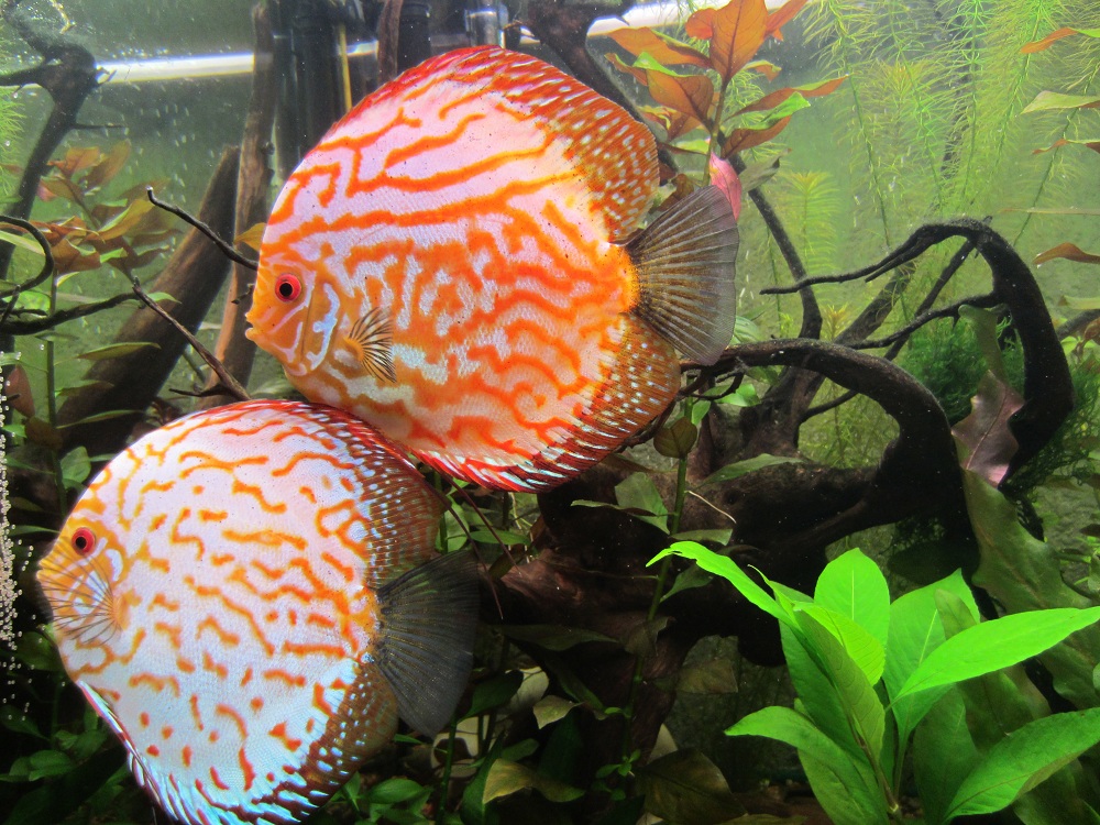 Говоря и видоизменении рисунка дискусов, есть примеры метаморфоза рисунка у дискуса в зависимости от возраста. Особенно это проявляется у пидженовской группы: скорпионов, чекербоардов и т.д. Покажу на наглядном примере с чекербордом: