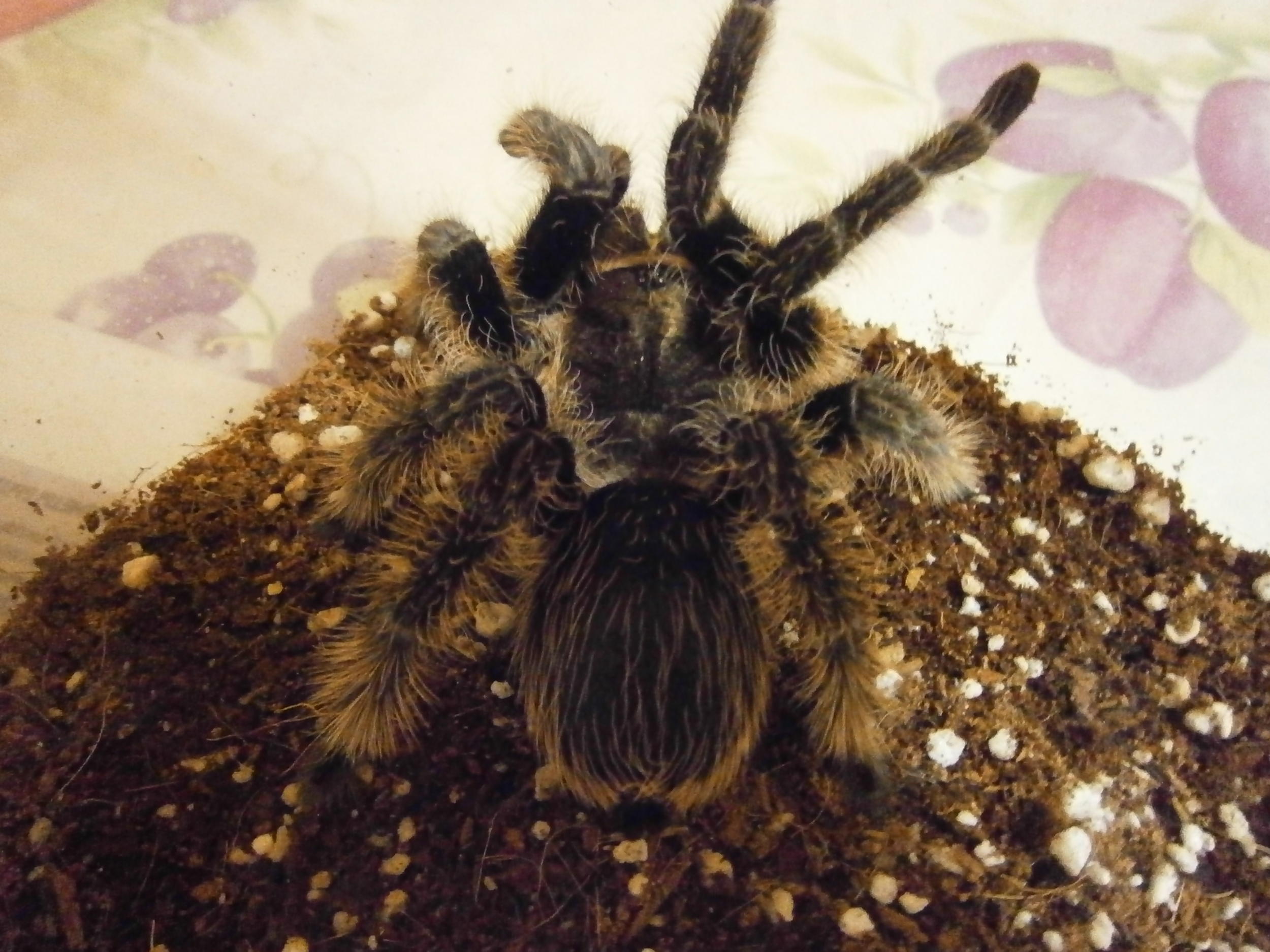 Brahma, Паук выглядит на 10 -11 л . Понять готова ли к спариванию невозможно, дождитесь 13-14 л ,тогда пробуйте. Поведение в террариуме : пусть паук делает , что ему хочется.