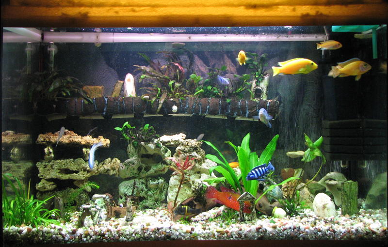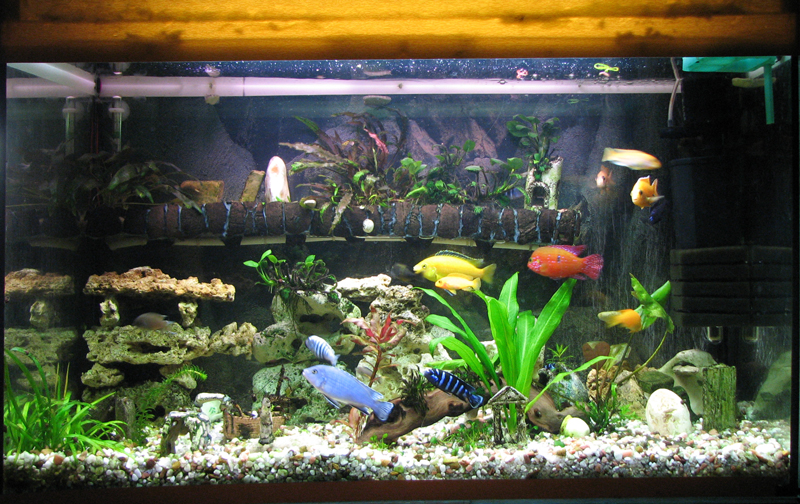 Аквариум 140 литров, 50 см, стекло, запущен в апреле 2010.