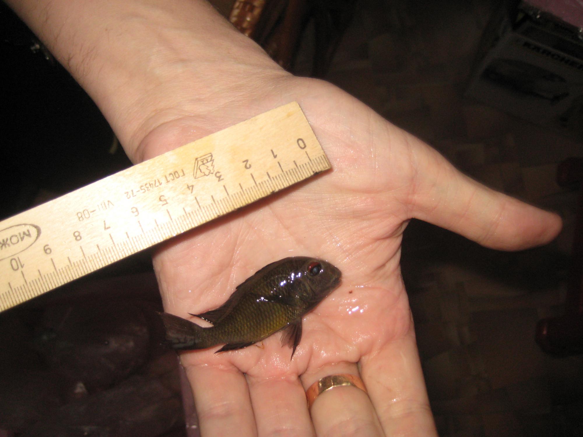 Как видите, человек ни разу не упоминает о качестве рыбы, его больше заботят другие вещи. Я обещал ему ответить на все его вопросы и кажется подробно это сделал. В завершении хочу сказать, что цель этого опуса не сказать, что вся рыба продаваемая вышеназваным продавцом плохая, отнюдь, как то брал у него мальков эретмодусов, претензий нет. Но в данной, конкретной сделке он повёл себя как АФЕРИСТ и НЕГОДЯЙ!!! О чём я и предупреждаю одноклубников и просто любителей Танги. Более красноречиво прокоментируют ситуацию, сделанные фото "супер трофов". На двух, на ладони для сравнения, лежат две рыбки одного возраста (мы не поленились и поймали мою самку), как говорится ощутите разницу.