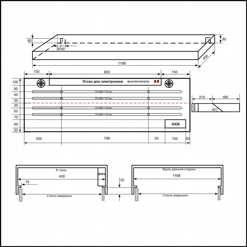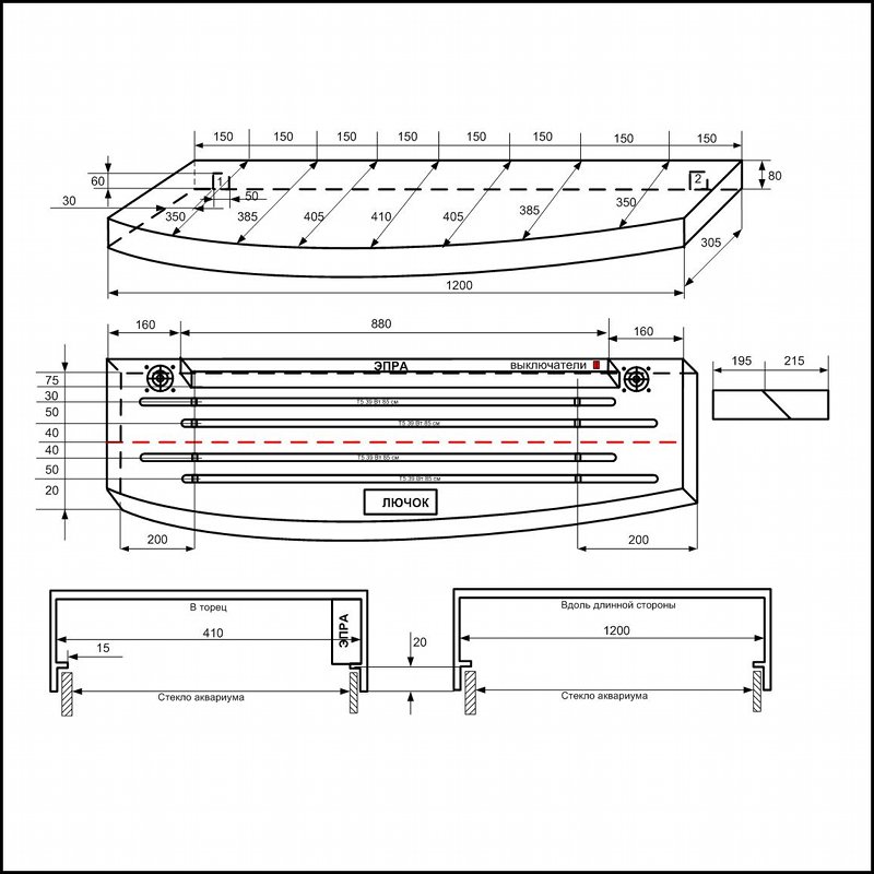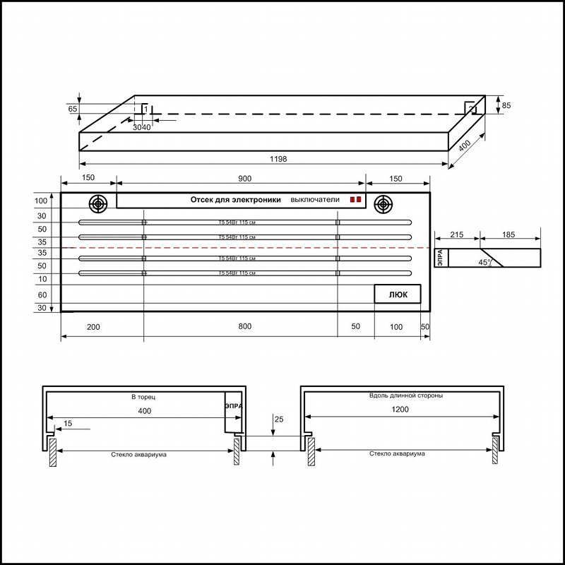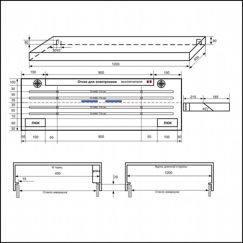 Приступая к изготовлению крышки для аквариума, впрочем как и любого другого изделия, необходимо четко понимать, что, как и из чего мы будем строить. Для того, чтобы потом не было «мучительно больно», нужно определиться с основными геометрическими и электрическими параметрами будущей крышки: