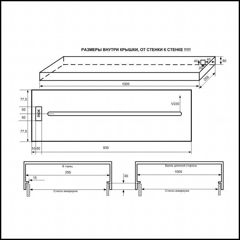 - предназначена для прямоугольного аквариума размерами 1005х255;