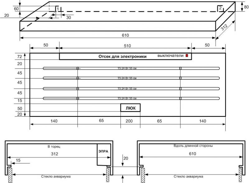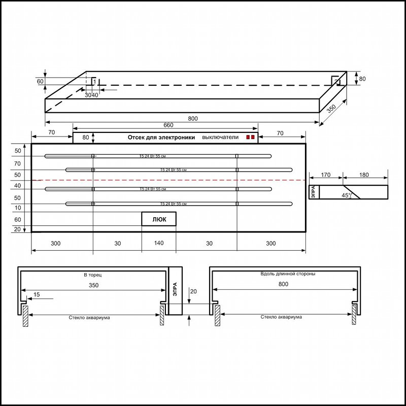 предназначена для прямоугольного аквариума размерами 800х350;