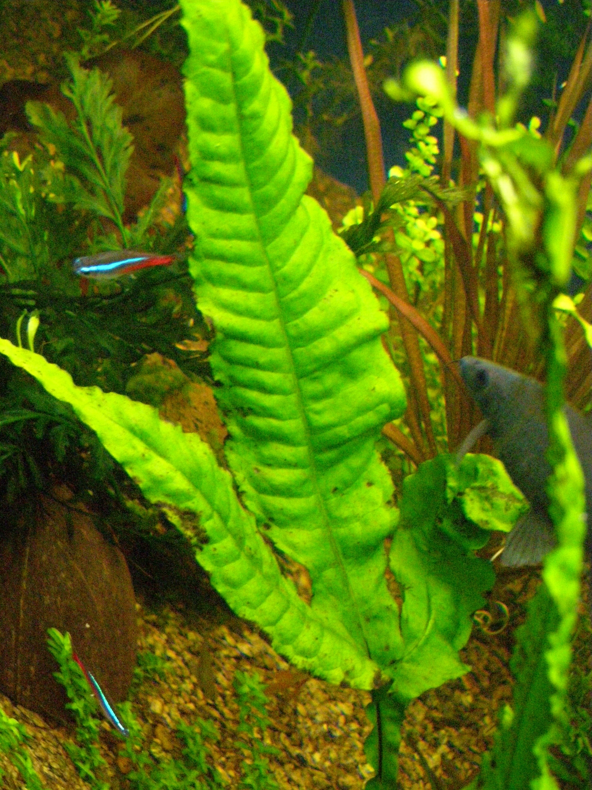 Когда-то в центре Черкасс возле здания госадминистрации была кафешка-столовая. Там стоял аквариум, и я всегда садился возле него и долго рассматривал папоротник, который рос вдоль задней стенки листья - до самого верха. Корневище - мощное, в длину на весь аквариум, а аквариум был не менее 120 см в длину. Как-то остальное смазывалось, не запоминалось. Всегда завидовал тому, кто вырастил такое чудо.