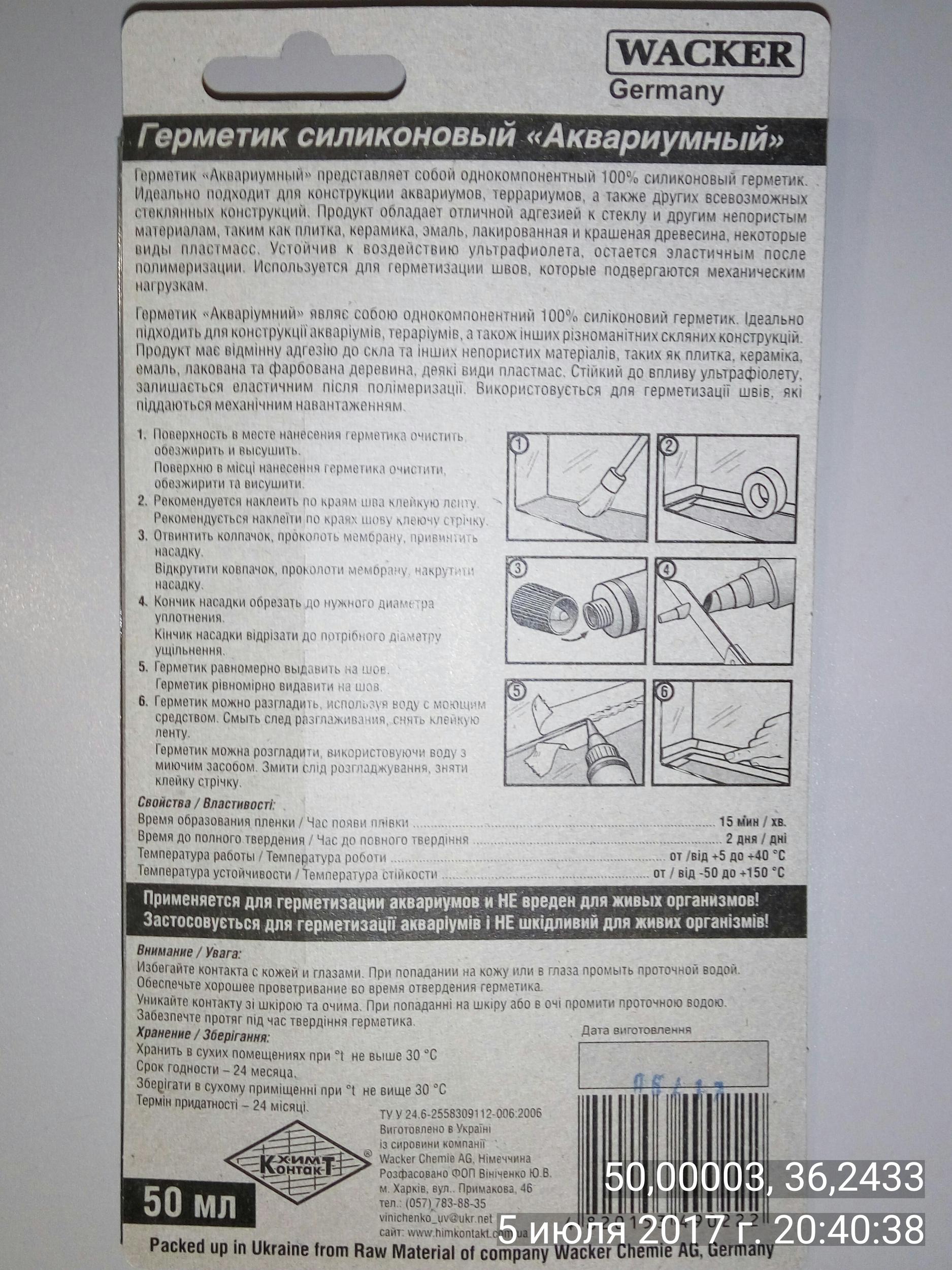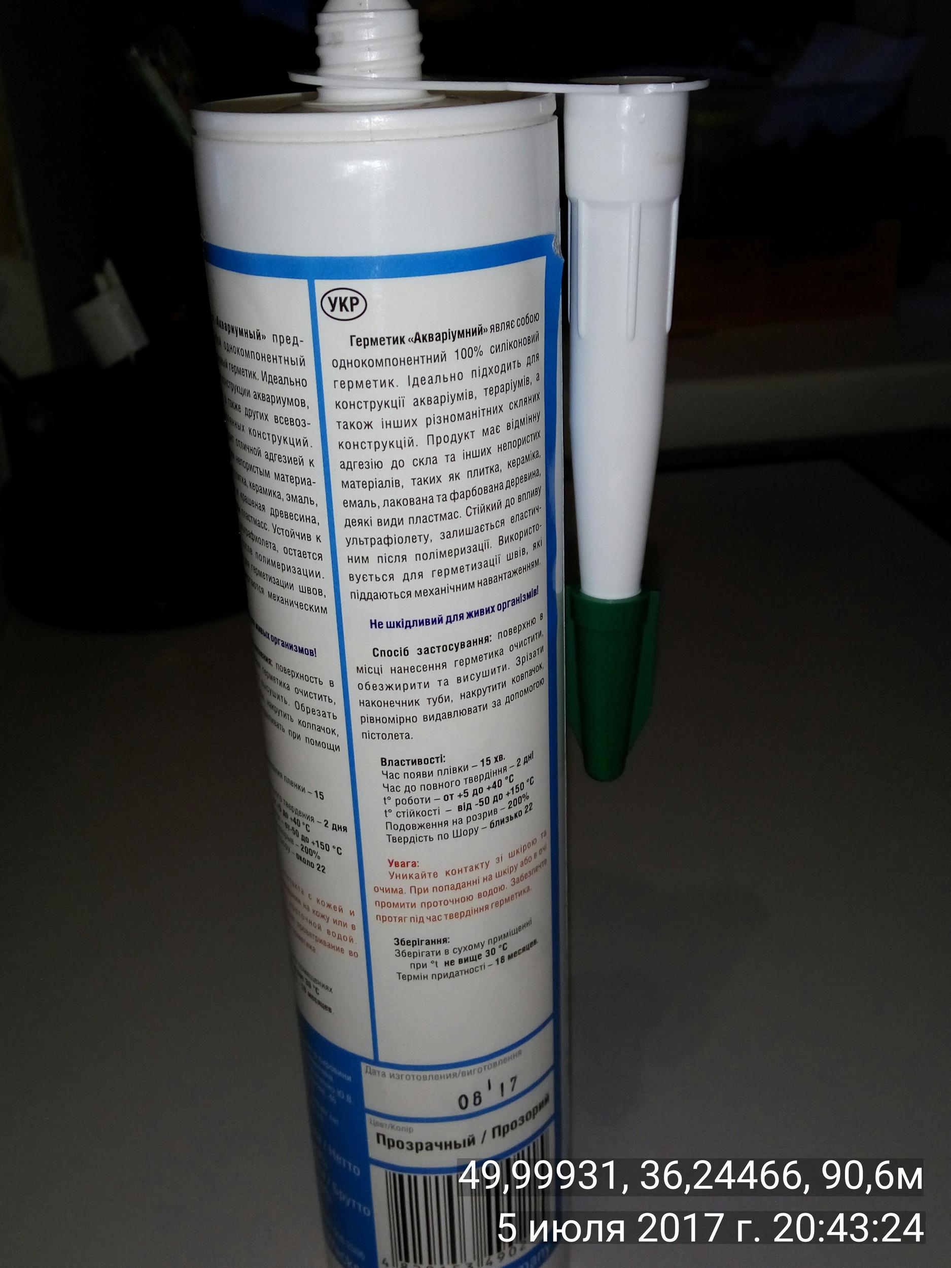 Герметик «Аквариумный» представляет собой однокомпонентный 100% силиконовый герметик. Идеально подходит для конструкции аквариумов, террариумов, а также других всевозможных стеклянных конструкций. Продукт обладает отличной адгезией к стеклу и другим непористым материалам, таким как плитка, керамика, эмаль, лакированная и крашеная древесина, некоторые виды пластмасс. Устойчив к воздействию ультрафиолета, остается эластичным после полимеризации. Используется для герметизации швов, которые подвергаются механическим нагрузкам. Не вреден для живых организмов. Идеально чистый.