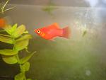 Lucky_2008, Это одна из множества цветовых форм пецилии вариатус. Есть флаговые варианты - у Вас обычные плавники. Похожи на моих / на фото 3,5 мес.,еще не окрасились/. Может Pavel13 что-то подскажет , у него вариатусов более пяти цветных форм.