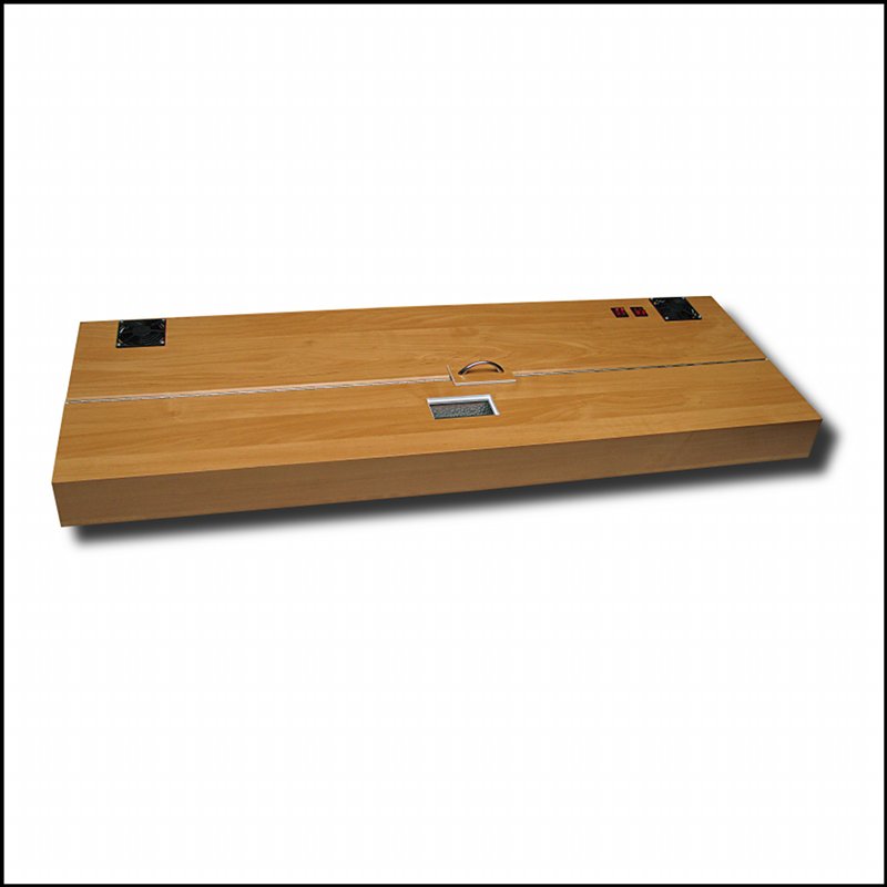 оригинальная «зеркальная» конструкция — открываются обе части крышки, аквариум установлен торцом к стене;