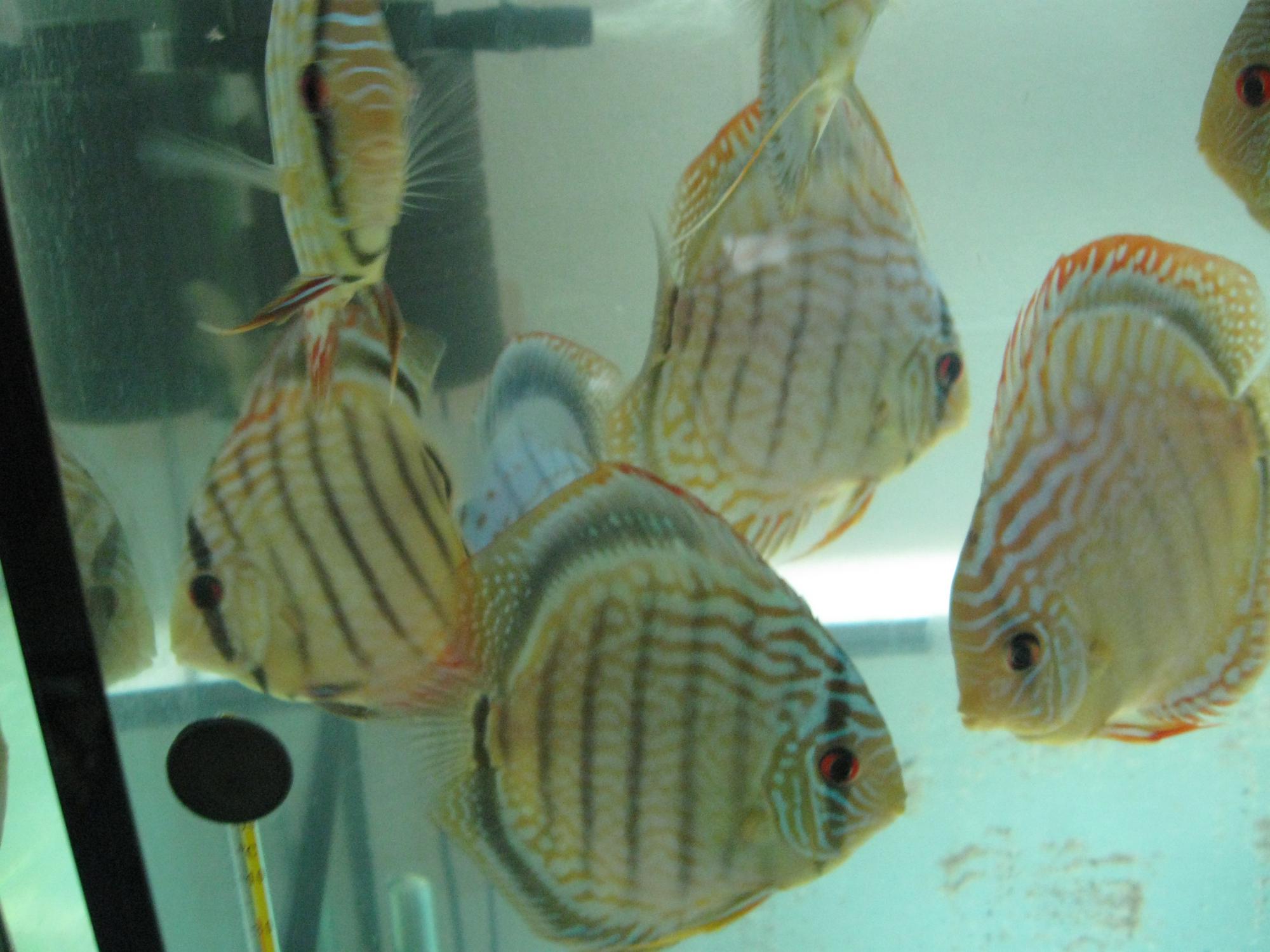 Ярких букетиков в 8- 10см.дискусов нет.Дискус преобретает полную окраску после нескольких нерестов.Ну не угодил с букетом.(надо было его из гипышей или малавийцев составить)Простите.