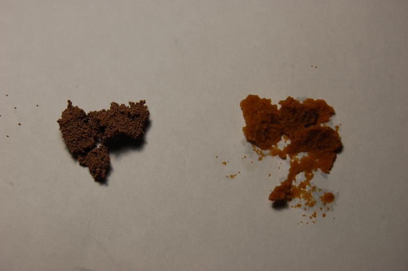 Оставшийся запах хлора на малька никакого влияния не оказывает. Некоторые источники предлагают использовать нейтрализаторы хлора. Я ими не пользуюсь. На фото изображана артемия до - и после - капсуляции, белизна, которая хорошо работает(большая часть выпускаемой белизны не годится).