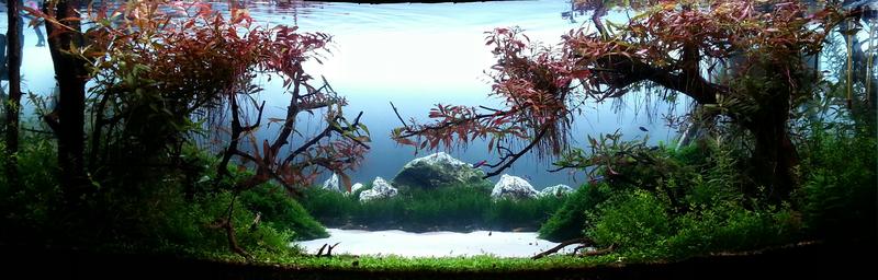 По бокам будут деревья.Полоса грунта у переднего стекла это окончание берега и будет заросшая глоссостигмой.От этого берега пойдет озеро (белый песок или симмитирую воду голубым веществом).Из-за веток сакуры будут согласно перспективы будут просматриваться высокие берега.У задней стенки сделаю копию Фудзиямы перед которой посажу мох огонь (иммитация леса под горой).Ну это основа, а мелочи буду на ходу делать.